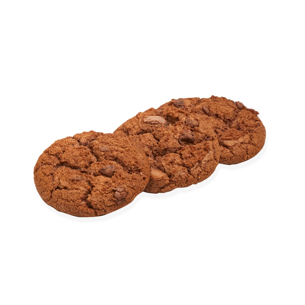 WHEAT flour (WHEAT flour, calcium carbonate, iron, niacin, thiamin), sugar & cane molasses, vegetable oil (palm, rapeseed, water, salt, natural flavouring), plain chocolate chips & chunks (10%) (sugar, cocoa mass, cocoa butter, emulsifier: SOYA lecithin; natural flavouring), condensed MILK (MILK; sugar), EGGS, partially inverted sugar syrup, cocoa powder (2.5%) (acidity regulator: potassium carbonate); milk chocolate chunks (2%) (sugar, whole MILK powder, cocoa butter, cocoa mass, emulsifier: SOYA lecithin; natural vanilla flavouring), raising agents: disodium diphosphate, sodium bicarbonate.